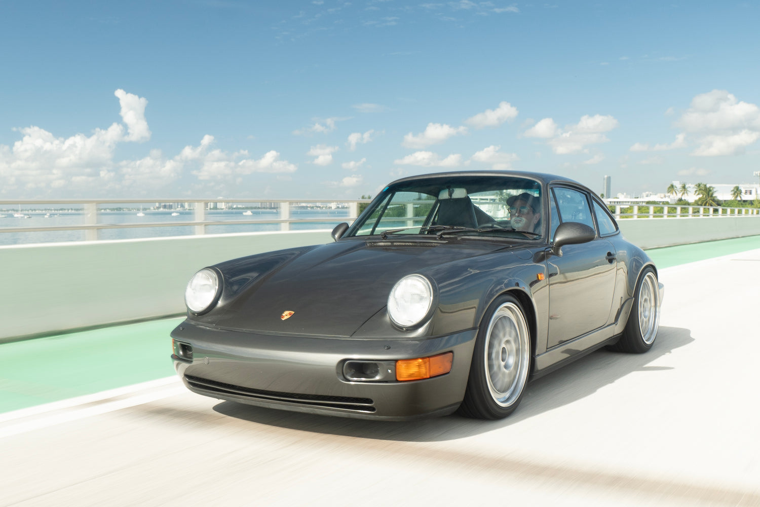 New valve cover gaskets, timing chain covers, cam seals, RS inspired 964 outlaw features a 991 GT3 exhaust, Fabspeed RSR headers, Porsche Classic Radio, BBS E88 Motorsport wheels, H&R Deep Coilovers, and ice cold air.